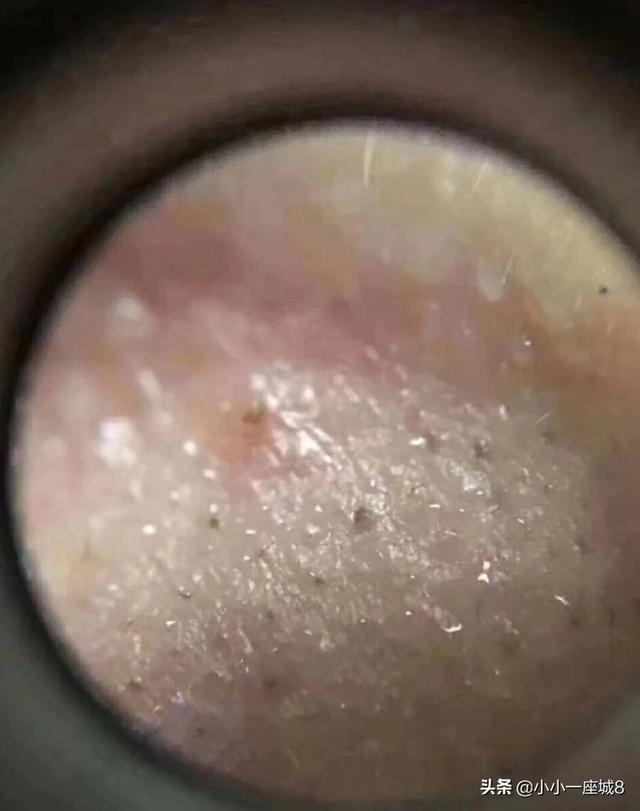 从视觉角度来看,螨虫初期是小白点,长着长着就是个小黑点。等长大后黑点也会变得更大;
