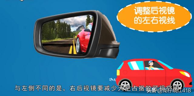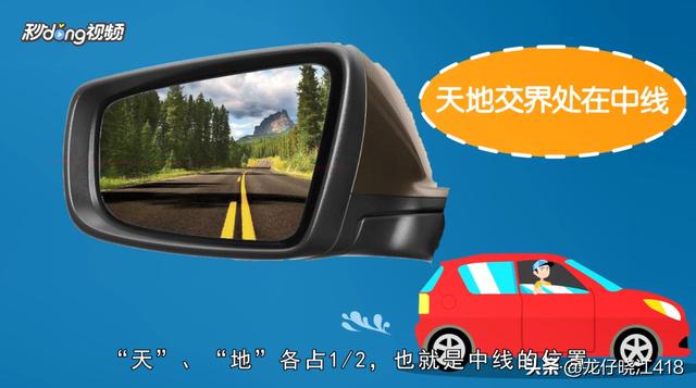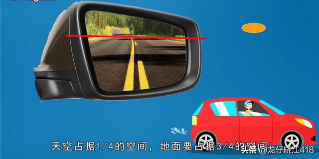 1.一般在调整左侧的后视镜时要以地平线为基准,先调整好后视镜的水平线。“天”“地”各占二分之一,也就是中线的位置。