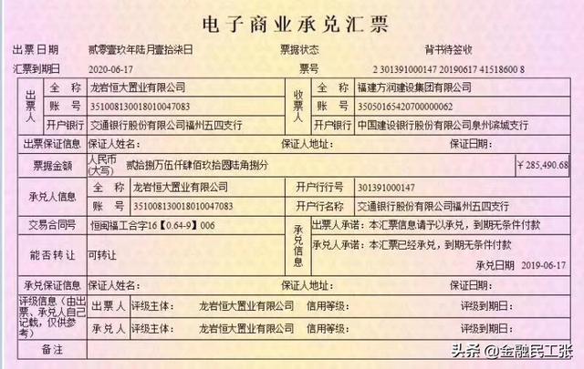 另外,还有一类由财务公司开出的银行承兑汇票,承兑人是财务公司。因为财务公司是持牌金融机构,也可以看做是可流通的银行承兑汇票。但是在市场中,这类汇票往往在兑付时出现很多问题,特别是经营状况不好的大型企业集团所属的财务公司开出的票据,因为缺乏足够的支付能力,造成这类银票无法按期兑付。实质上,也是一种另类的商业承兑汇票。