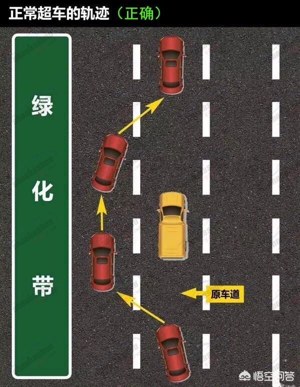 交通法里的超车并不是简单的后车超越前车那么简单,而是从原车道变道,超越前车,后重新变道回到原车道,超车要经历两次变道。