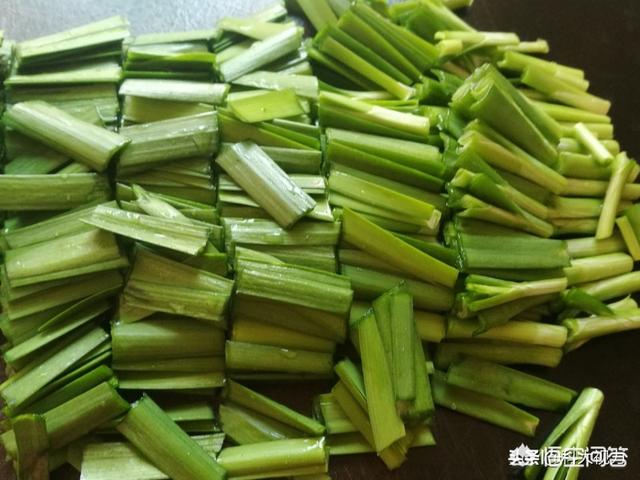 步骤三:开始处理韭菜,将韭菜切段,韭菜头尾需要分开,因为韭菜头不容易熟,韭菜尾煮久了会老,就会变得不好吃了,所以韭菜尾需要后放,在切的时候应该分开。