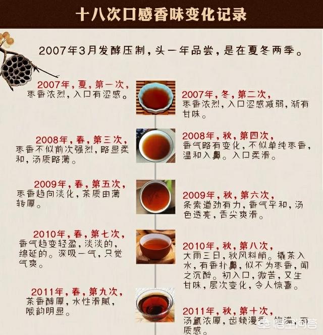 关于第二个问题,怎么样辨别茶叶到底保存几年了?其实这个是很难准确回答的,因为茶叶存储的地点、仓储条件不同,转化的情况也会有所区别。