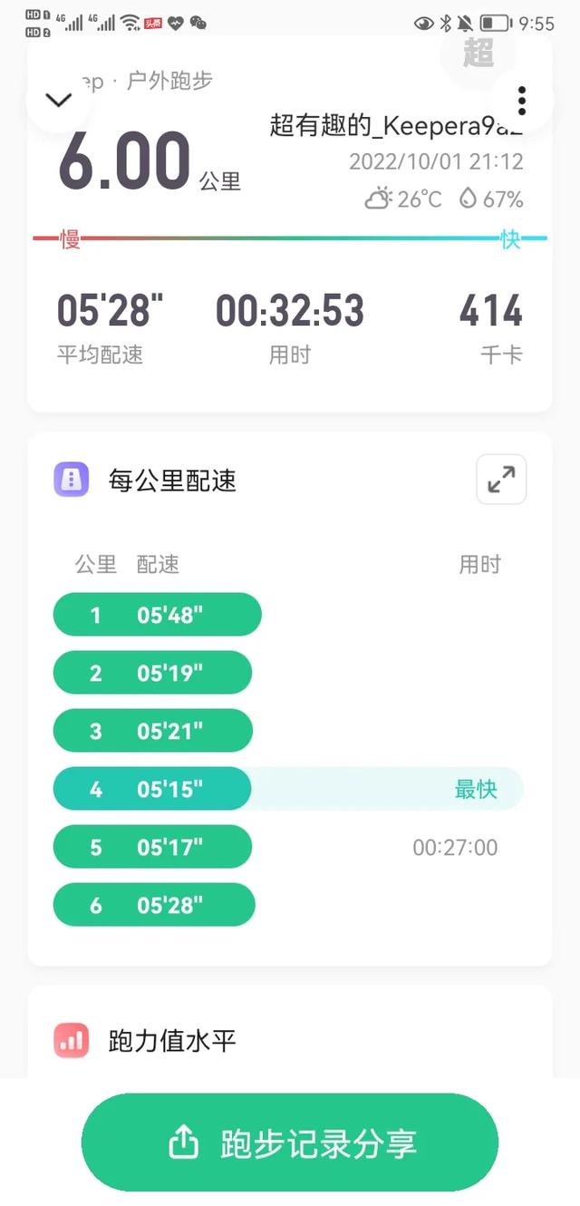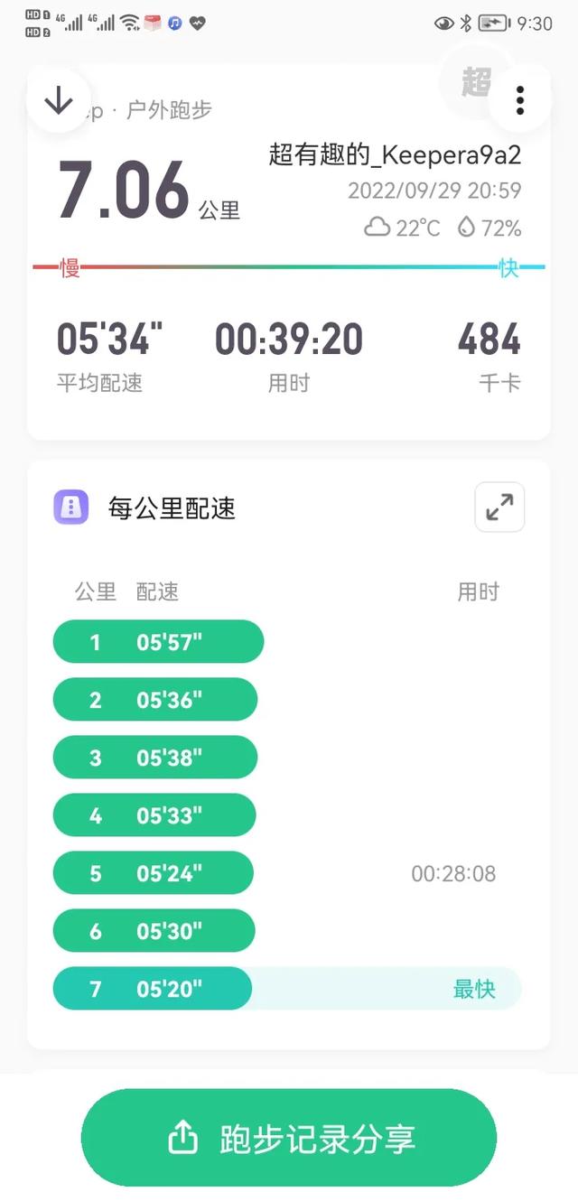 我感觉这可能会是我的一个瓶颈吧,感觉心肺的承受力快达到极限了,打算先适应这个速度一周再说,想下周疲劳期过了就挑战一下18分钟。只要能稳定跑进18分钟,我就打算开始跑5KM了。