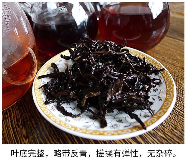 普洱茶干茶条索紧直、厚实、显毫,色泽黑褐或褐红,冲泡之后,汤色橙黄或红浓,香气高扬持久,香型独特,滋味醇厚甘鲜,非常耐泡。