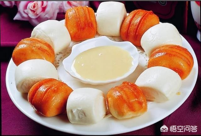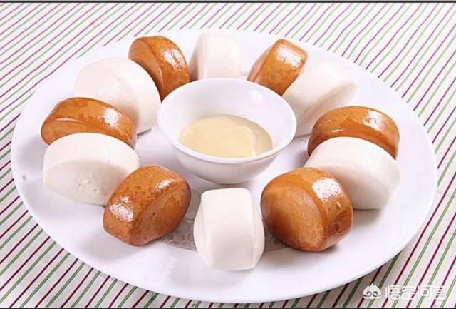 金银馒头一打12个,蒸好后炸制6个,6蒸6炸装盘,中间用小碟装入炼奶,一道美味的广式金银馒头完成。