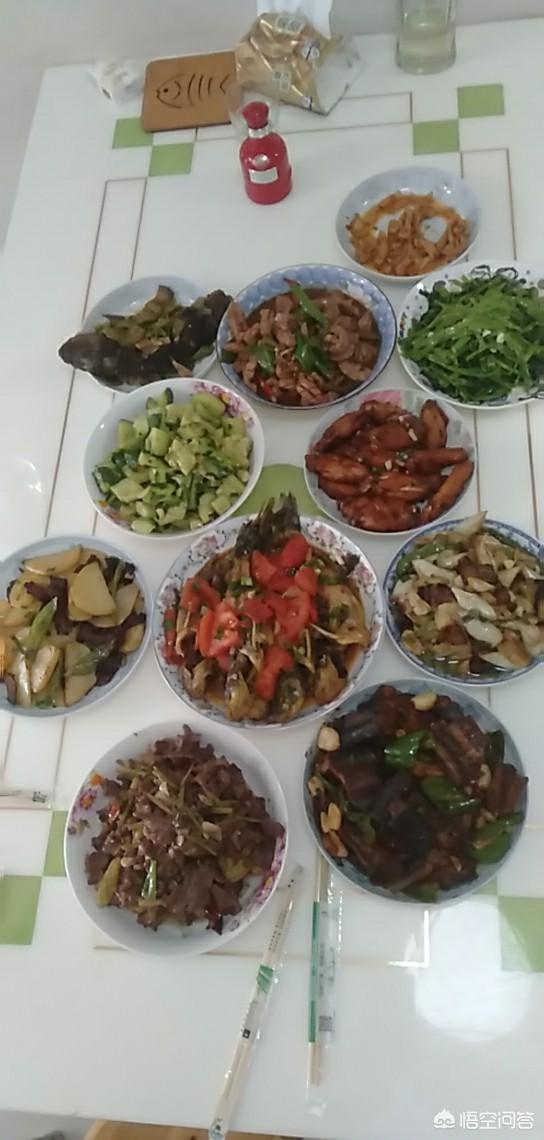 大多都是老公操持一切,我打打下手,提提建议!老公一般会做五六个菜!红烧鱼、糖醋排骨、炖汤,还有一些素菜和凉菜!在家里吃饭比较实惠,而且比外面的干净卫生!