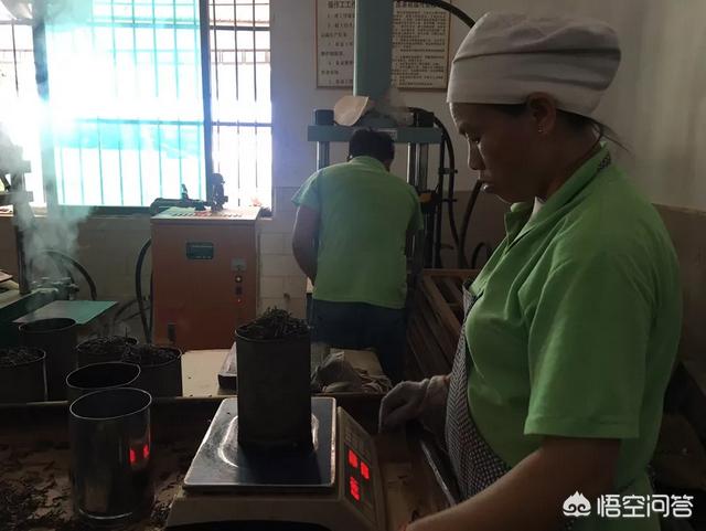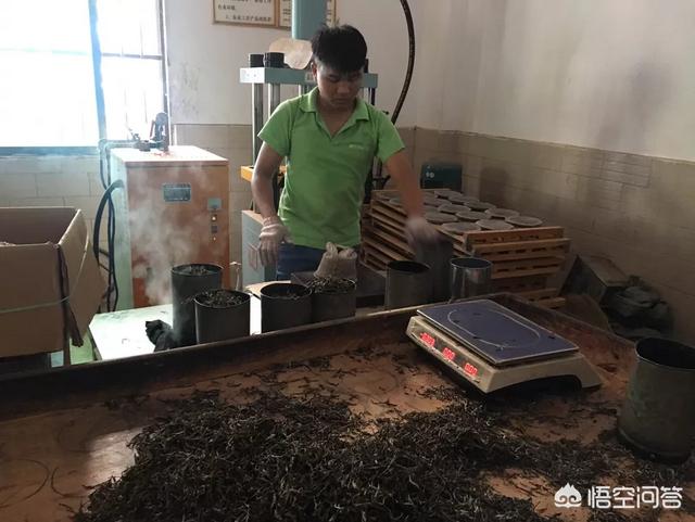 1. 称茶:把晒青毛茶装入蒸茶的铁桶里;