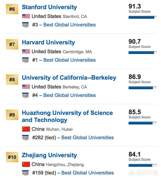 而中国另有两所大学挤入前10名,实在是可喜可贺,分别是华中科技大学和浙江大学。中国大学在计算机科学这个领域取得的成绩有目共睹,希望能再接再厉。