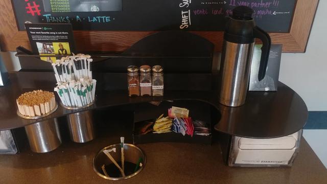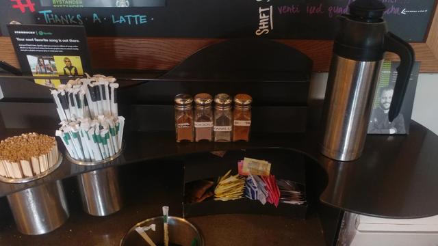 问卖给你咖啡的侍应生索要即可!但凡星巴克这些如肉桂、焦糖、可可、香草以及西亚口味的袋装蜂蜜都会有备客户索取的。国内不放置在吧台处由客户自行根据口味添加?原因也很简单,贪心者众、高买亦多啦!