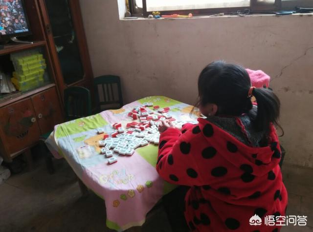 而我呢,正看着小孩子们,她们正在玩麻将!