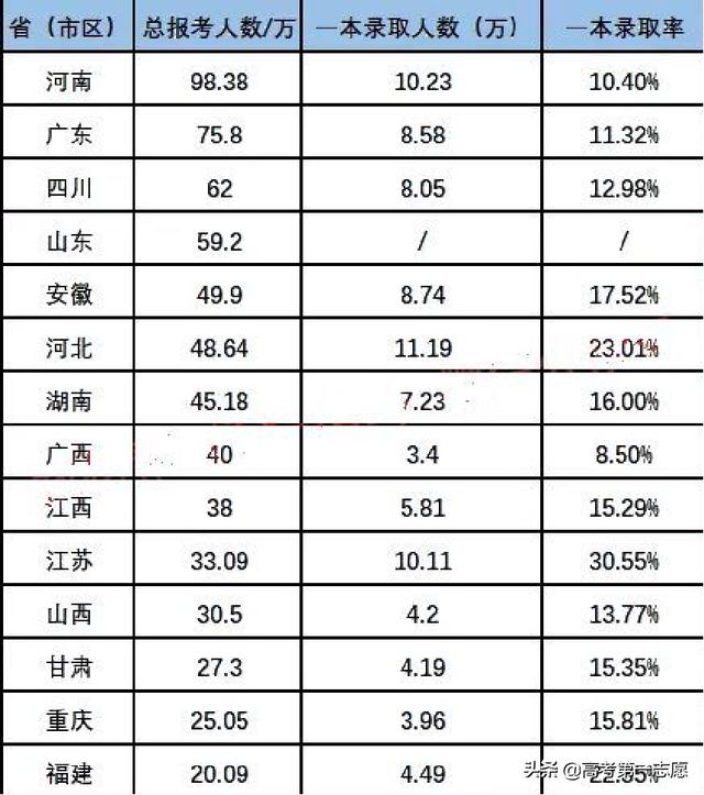 按照上面的标准,则升读本科最为容易的地区为:北京、上海、陕西、吉林;