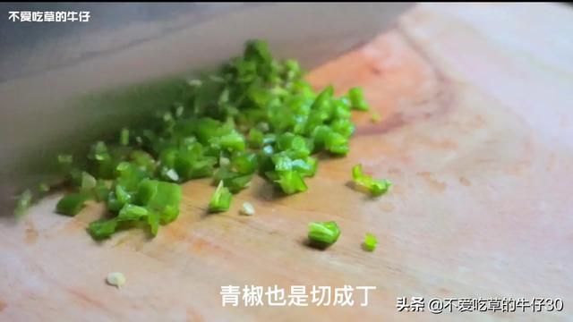 1. 胡萝卜、葱和青椒切碎,加入打好的鸡蛋碗里,再加盐、黑芝麻和胡椒粉,搅拌均匀。