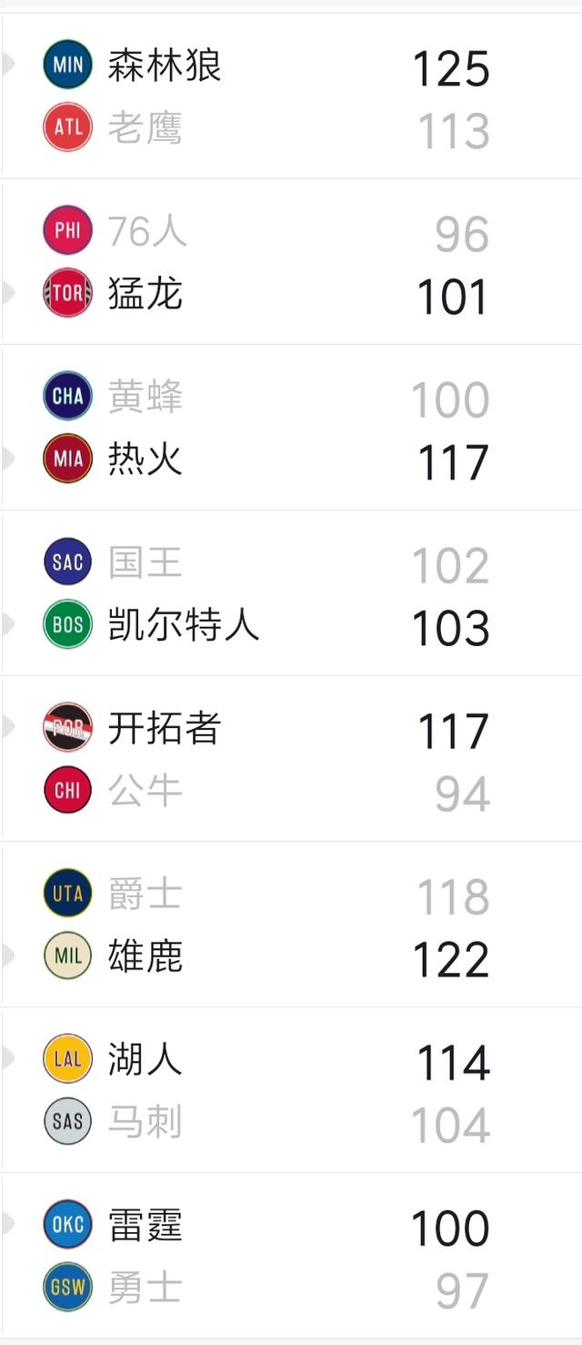 另一边雄鹿对阵爵士算是为今日的比赛质量提升了一个档次,两队皆是季后赛的队伍目前状态也是火热,但爵士怎知雄鹿是东部的天,爵士做好了上半场的发挥却在第三节自毁前程连续的进攻不中给了雄鹿提速的机会,就这样雄鹿单节轰下42分直接反超比分,末节决战爵士反扑号角异常凶猛但今日的字母哥绝对让爵士重新做人,全场轰下50分14板6助攻直接一梭子带走比赛最终爵士以118:122不敌雄鹿止步三连胜,而雄鹿则八连胜。