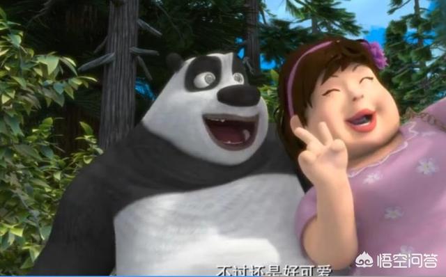 这时熊大从草丛中跳了出来,才缓解了这尴尬的气氛,熊大装扮成了一只大熊猫,很受这个贵妇人喜欢。并与熊大合影留念。看得光头强目瞪口呆。