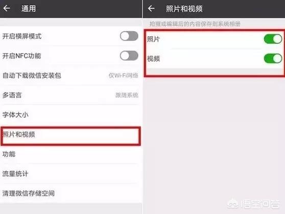 依次点击:设置—通用—照片和视频,将这两个按钮关闭,以后微信分享的照片和视频就不会自动保存了,节省空间。