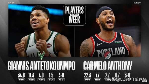 在12月3日,NBA公布了上周的东西部周最佳球员,雄鹿字母哥和开拓者的安东尼当选。这是安东尼职业生涯第17次当选周最佳球员,他上一次当选周最佳球员还要追溯到2014年3月10日。5年后的再次当选周最佳,让球迷纷纷表示十分感动,认为当年那个梳着小辫子的甜瓜回来了。