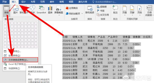 除了将表格转化为非表格,我还会交给你如何将文本一键转化为表格。
