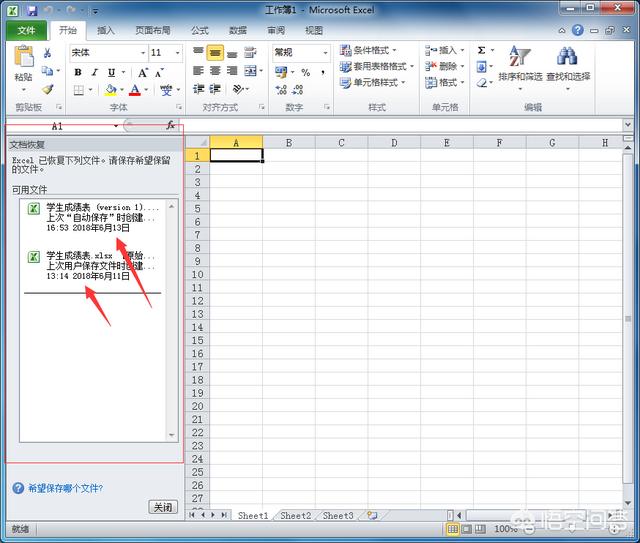 在死机或非正常关闭以后,再次打开EXCEL,会有恢复文档提示: