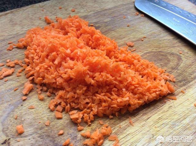 3;胡萝卜洗净切末,放入肉馅中