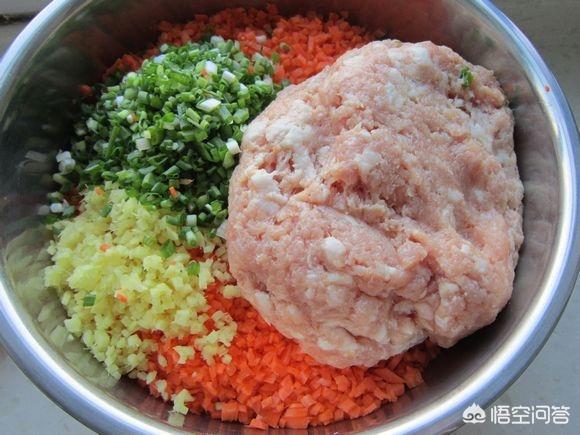 羊肉胡萝卜馅(羊肉+胡萝卜+盐+大葱)。