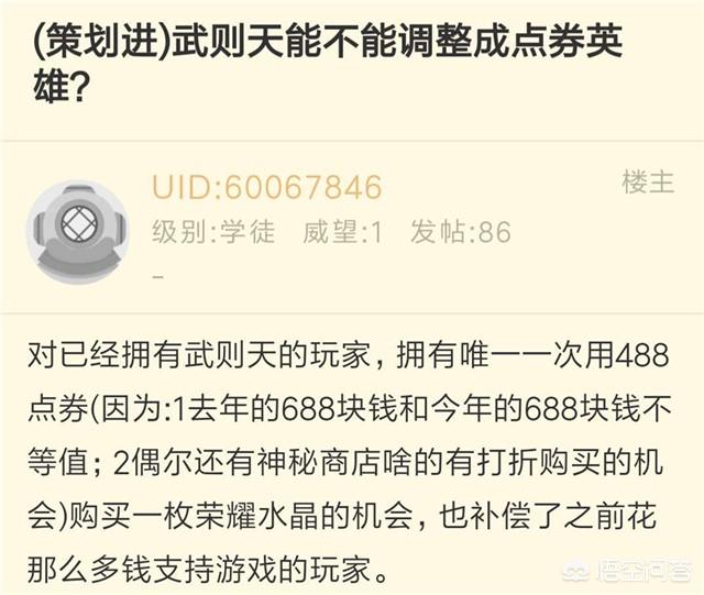 最近王者荣耀玩家建议官方将武则天调整为点券英雄,这样会被大家接受吗?