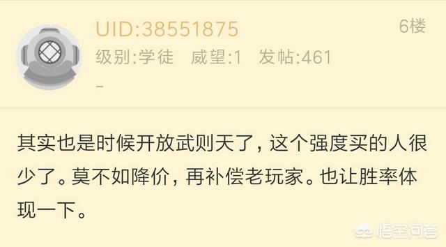 其实我认为官方不进行调整是正确的,如果变成点卷英雄,肯定会对她进行一波加强,而她的技能又有些逆天,如果变成一名大众英雄,肯定会影响到游戏平衡,到时候会彻底将武则天毁了,不但已拥有武则天的玩家不会接受,就连我这个零氪党都不会接受,小伙伴们,你们认为这名玩家的提议怎么样?期待以这种方式获得武则天吗?