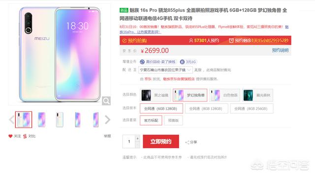 魅族16sPro:6+128GB 2699元,8+128GB 2999元。