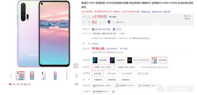 荣耀20Pro:8+128GB 2899元,8+256GB 3199元。