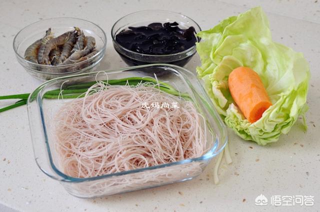 食材:米粉、鲜虾、五花肉、鸡蛋、时令蔬菜、葱姜蒜、盐酱油醋等调味料