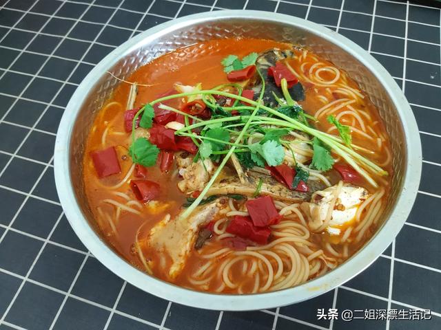 其次,我们可以将米粉作为配菜,做鱼头炖粉条。同理将米粉煮好过凉水备用,起锅烧油加一勺豆瓣酱炒出红油,加入鱼头煎一下,加入水焖煮鱼头,现在可以调味,加入生抽,老抽,耗油,盐,最后加入准备好的米粉,煮三分钟就可以出锅了,喜欢香菜或者葱的可以加入。