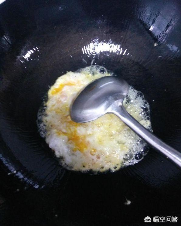 步骤:1.将锅烧热后倒入鸡蛋打散后盛出备用