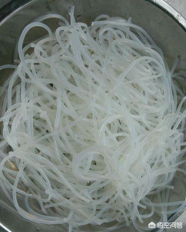 头一天晚上准备好干米粉,用盆子放凉水浸泡一晚,到第二天早上就泡软了,可以把粉捞出来。然后拿锅装水,把水烧开下泡好的米粉煮到用手捏下,里面没有硬粉就可以倒出锅,用自来水冲洗,洗清水就可以了。