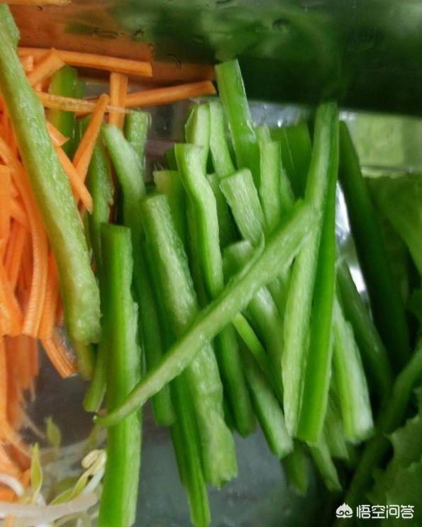 5、青椒适量,洗净后切成丝备用。