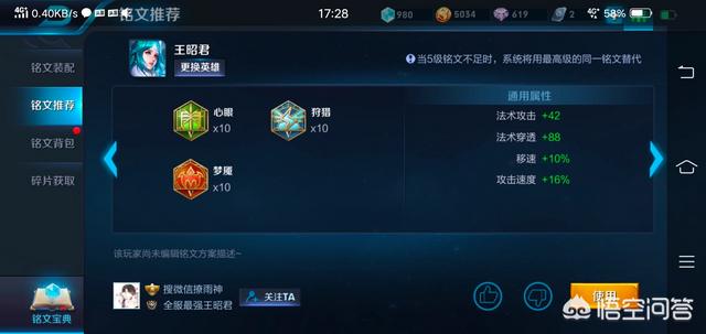 王昭君建议先出冷静之靴+痛苦面具+回响之杖+博学之怒+虚无法杖+辉月。先出冷静之靴可以更好减少CD,更好的不断的释放技能,从而更好地输出。2.出痛苦面具,它的被动可以减少CD和当前生命值8%的法术伤害加75的法术穿透。3.回响之杖,它的被动是会造成小范围暴炸,4.博学者怒,它的被动+240的法术攻击,曾加了法术伤害,5.虚无法杖,曾加一定的生命值+180的法术攻击+45%的法术穿透。6.辉月,它的被动是在放大招的时候,不让敌方打断和免疫所有效果,曾加160的法术攻击和10%的冷却,铭文方面是心眼10+狩猎10+梦魇10,法术攻击+42,法术穿透+88,移速+10%,攻击速度+16%,以上都来自国服大神提供的参考,喜欢的小伙伴可以点个关注