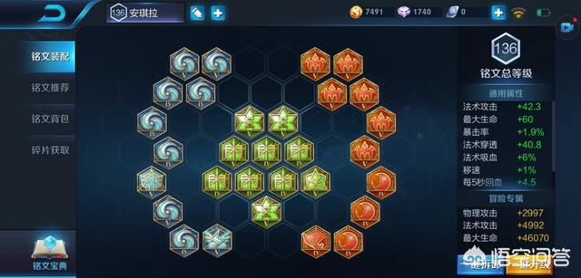 当中单时由于太脆容易被对方刺客针对,所以尽量猥琐,清兵线可以直接开大,开完敌方不敢靠近,清兵线也快,可以快速让我方兵线补上去推塔,慢慢消耗对方,铭文的话用的是法穿符文,加减冷却的符文,怜悯x10 梦魇x10 轮回x10我用的跟安琪拉一样通用的。