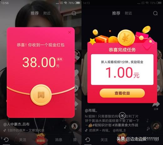 登陆就有最高38元的新人红包还有额外送3元现金,每天看的抖音视频都有现金领取,和平时看的抖音内容没有什么区别,但是这个极速版却可以赚钱,只要看视频就有红包拿。
