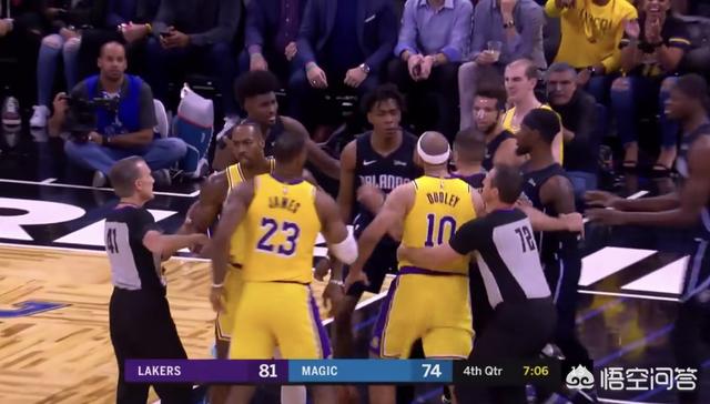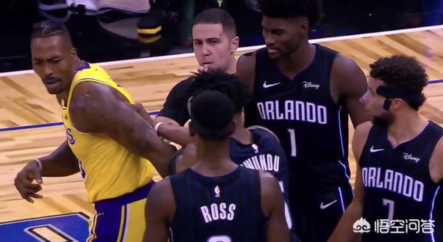 在这场比赛的第四节,湖人球员霍华德是和魔术队的众位大将发生了冲突,当时霍华德在篮下争抢篮板球遭到了对手的犯规,魔兽显然对此心有不满,于是在裁判吹停比赛之后,是用自己的肘部推了一下魔术球员艾萨克,随后冲突爆发,多位魔术球员是顿时围住了霍华德。