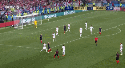 71分钟,英格兰后防线低级失误,门将皮克福德和中后卫互相等球,佩里西奇获球突入禁区左脚抽射击中柱,雷比奇的补射被皮克福德抱住。
