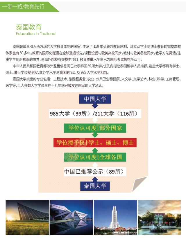 中华人民共和国教育部涉外监管信息网已公示泰国89所大学,优先向拟赴泰国留学人员推荐,网址http://jsj.moe.gov.cn/n1/12048.shtml。这些大学都具有学士、硕士、博士学位授予权,其办学水平基本上与我国的211及985大学水平相当,综合办学实力不容小觑。