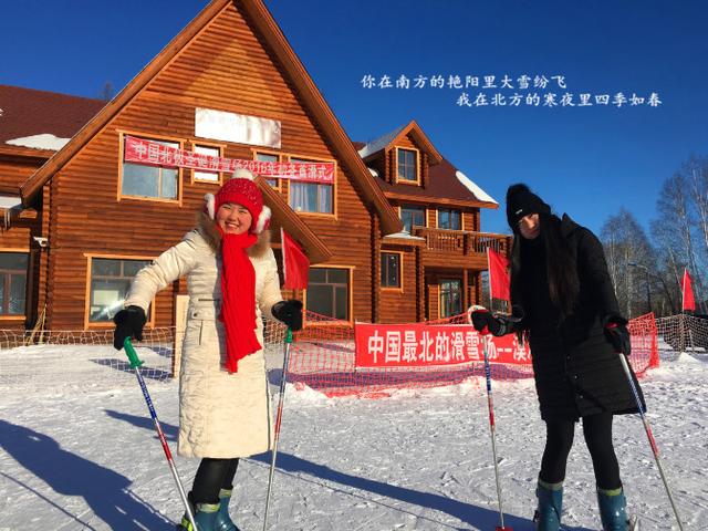 拉着闺蜜,冠上 “我还年轻,就要走在青春和梦想的路上” ,我们来到漠河了。