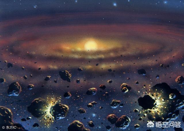 核聚变反应完成后的恒星会用引力把恒星盘中的剩余物质吸引在一起,这些剩余物质也会因为万有引力而慢慢聚拢在一起,在恒星冰冻线内的物质由于温度太高所以都是金属或者岩石内核的类地行星,而冰冻线以外是可以存在气体和水分子的,所以冰冻线以外的行星一般都是体积和质量都比较大的气态行星。行星和恒星最本质的区别在于质量,一个恒星几乎占据了恒星盘时期所有的质量,拿我们的太阳系来说,太阳占据了太阳系总质量的99.86%,剩下的0.14%变成了现在的八大行星和数十万小行星,而八大行星里的木星质量是其他七个行星加起来质量的二倍。