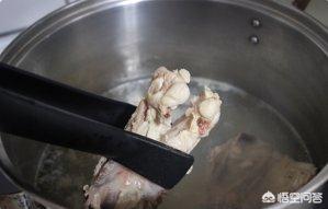 2、起锅烧水,放入鸡架待煮至肉色转白,表面无血污,取出。