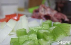 1、鸡架剁成5cm见方,切去多余的油脂,洋葱、胡萝卜、西芹切2cm见方的大丁。