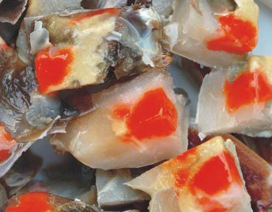 以梭子蟹为代表的海蟹是宁波盛产的海鲜中非常有特色的一种,也是最受广大宁波人欢迎的一种。别看梭子蟹不及大闸蟹那么有名气,却有自己独特的美味。梭子蟹相比大闸蟹个头更大,里面的肉自然也更多,可以吃得更加过瘾。而那蟹膏,更是梭子蟹的精髓,鲜美无比,用来做红膏炝蟹特别美味。