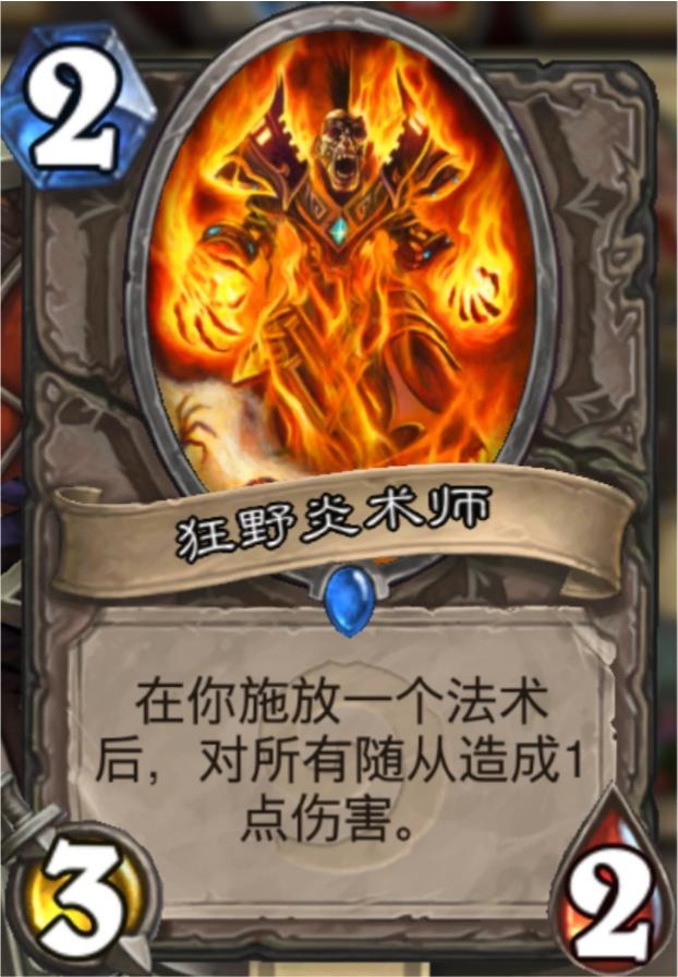 狂野炎术士可以对所有随从造成伤害,配合治疗之环和北郡牧师可以过大量的牌,如果再配合光照元素使法术减费,说不定当回合就能buff出一个大怪斩杀对手。