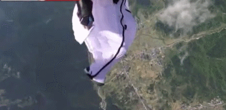 从动图中,我们可以看出5月12号上午11点,天气晴朗,直升机的高度在2500米,一切看着很顺利。先是女翼装飞行员跳下,摄影师随后跳出,尾随飞行。按照计划,两人向天门山台型主山体方向飞,但在19秒后,女翼装飞行员飞行姿势发生严重变形,也开始脱离飞行路线,摄影师挥手示意打开降落伞,但女飞行员没有任何动作,急速下降数百米,消失在空中,摄影师调整姿势,绕过山体,返回降落点。