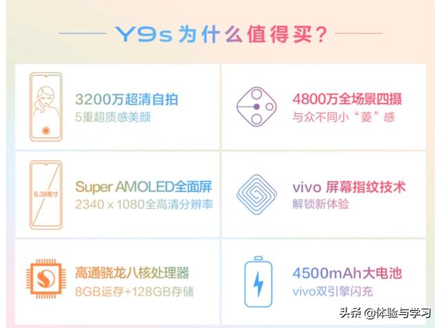 vivo y9s 贵了点,主要体现在屏幕质量和前置摄像头,vivo y9s 更值得购买