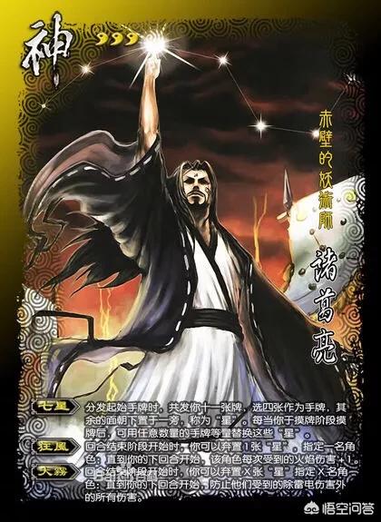回到问题,这样看来,不管是上述的哪种情况,诸葛亮衣服都不应该是左衽的穿法,来看看三国杀神诸葛原画,确实是左衽。
