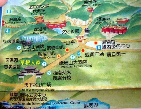 峨嵋山站进去坐5A路公交车就能够到报国寺景区,也许十分钟阁下。报国寺景区有许多旅社堆栈宾馆,价格从五十到三四百不等。许多旅社老板都能够开车来