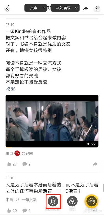 你可以使用手机截图保存界面,然后打开白描,选择刚才的截图,点击底部按钮设置要读取的区域(如下图1),然后点击“文字识别”按钮,即可完成操作。它相比起小程序和qq来说,识别的效率更高,能实现一次性批量识别。而翻译、校对、生成pdf等的功能也做得不错,推荐一试。
